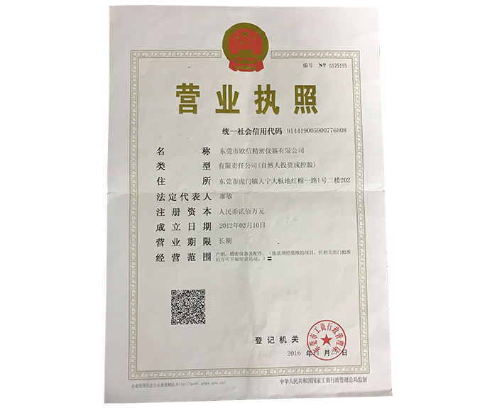 企業(yè)名稱:東莞市歐信精密儀器有限公司
